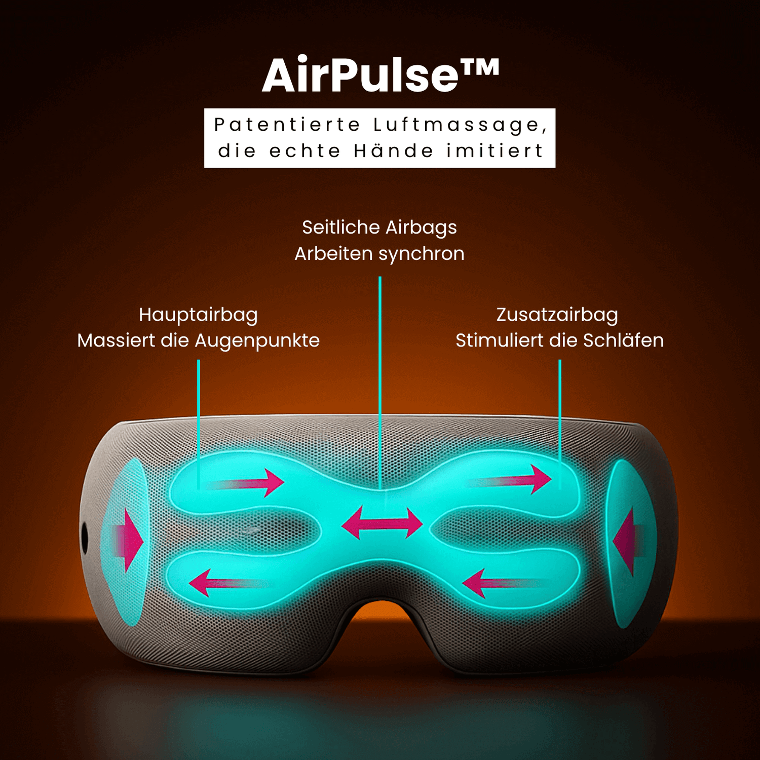 ✔️ Luftdruck-Massage: Fördert die Entspannung rund um die Augenlider und Schläfen.