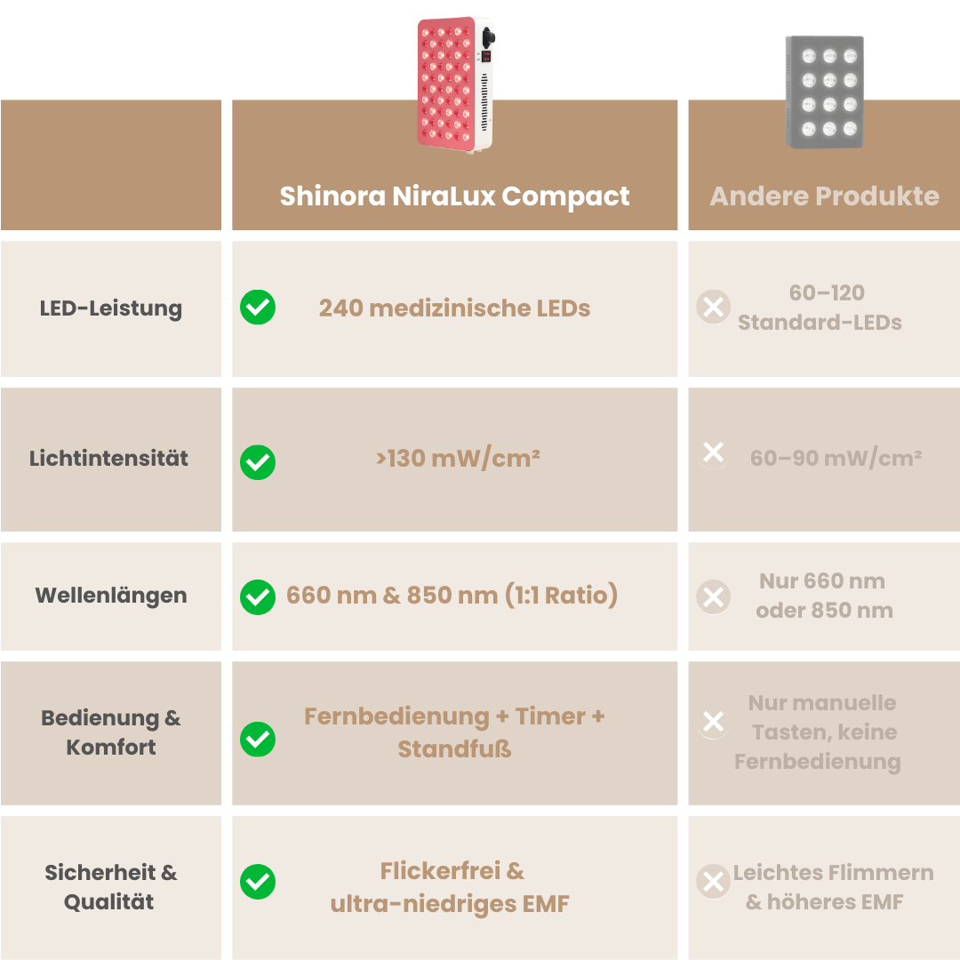 NiraLux Compact – Infrarot Lichttherapie Panel gibt dir die Kontrolle zurück.