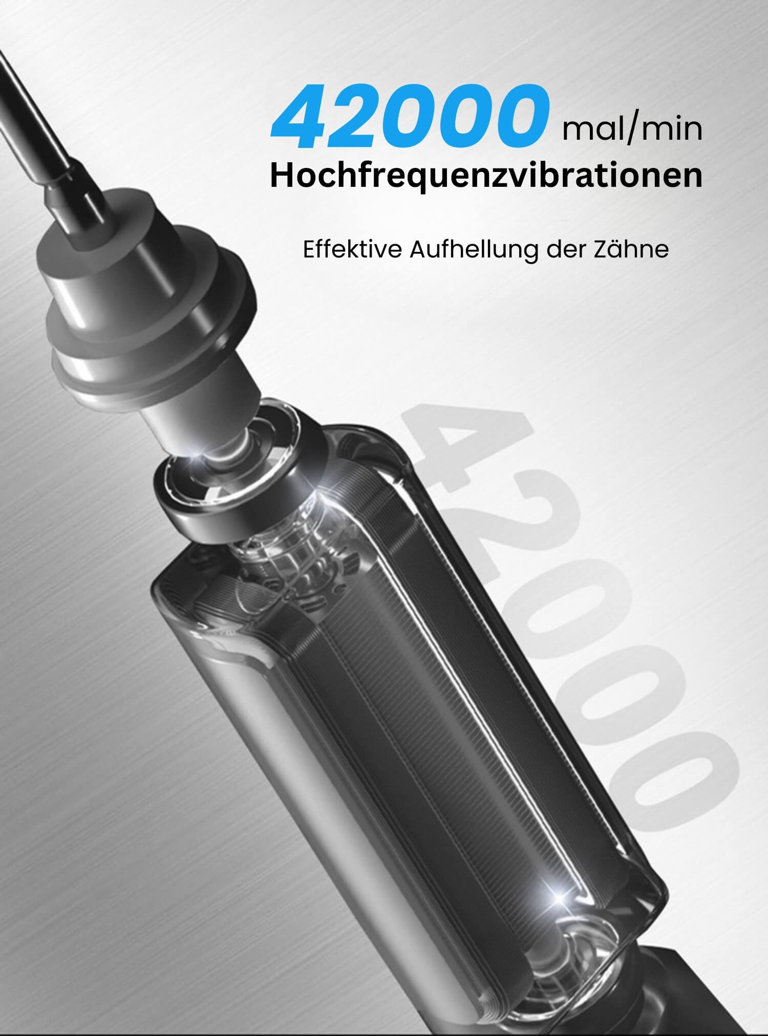 42.000 VPM: Entfernt bis zu 10x mehr Plaque als Handzahnbürsten.