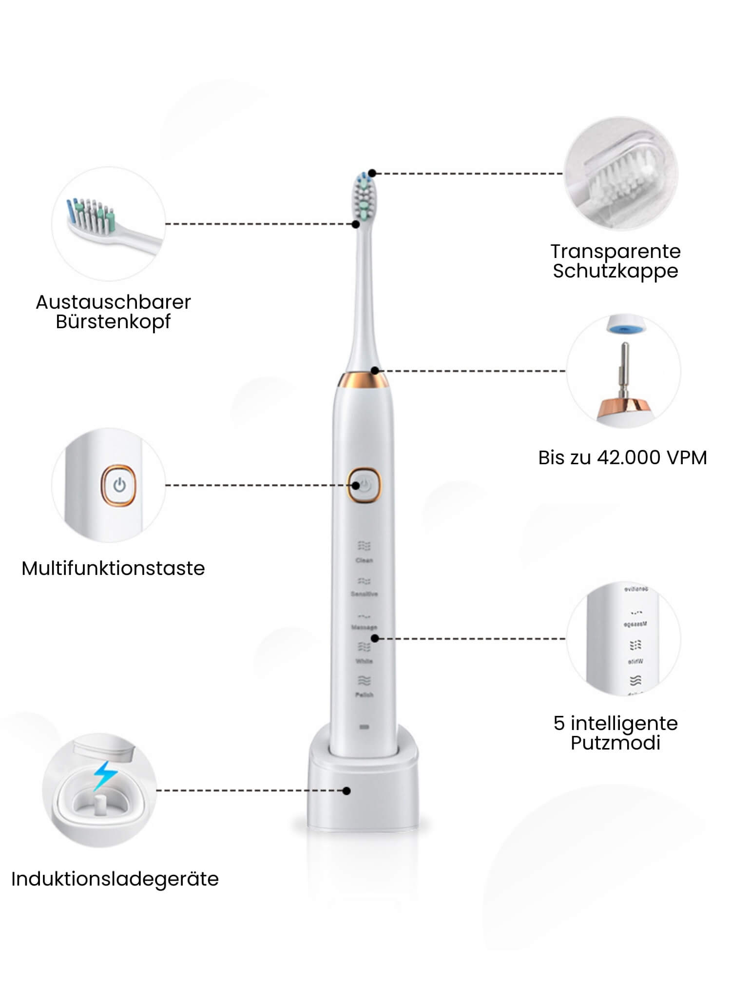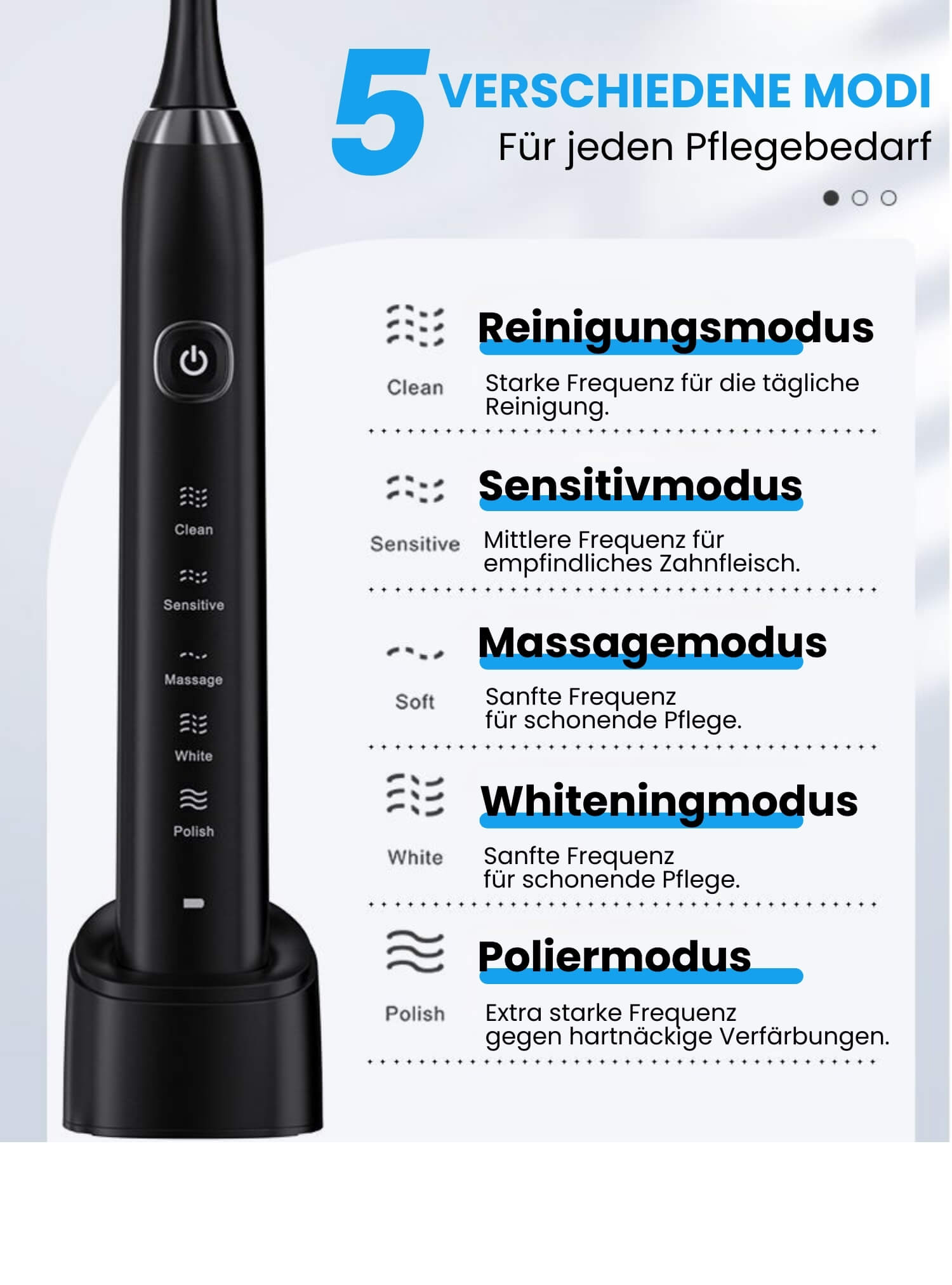 - Schonend: Sicher für Zähne und Zahnfleisch mit 5 Reinigungsmodi.