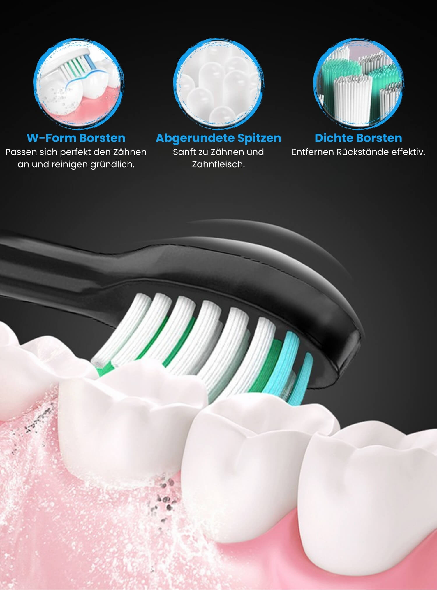 - Sanfte, aber gründliche Reinigung – Dupont-Borsten mit 3D-Struktur entfernen Ablagerungen, ohne das Zahnfleisch zu reizen.
