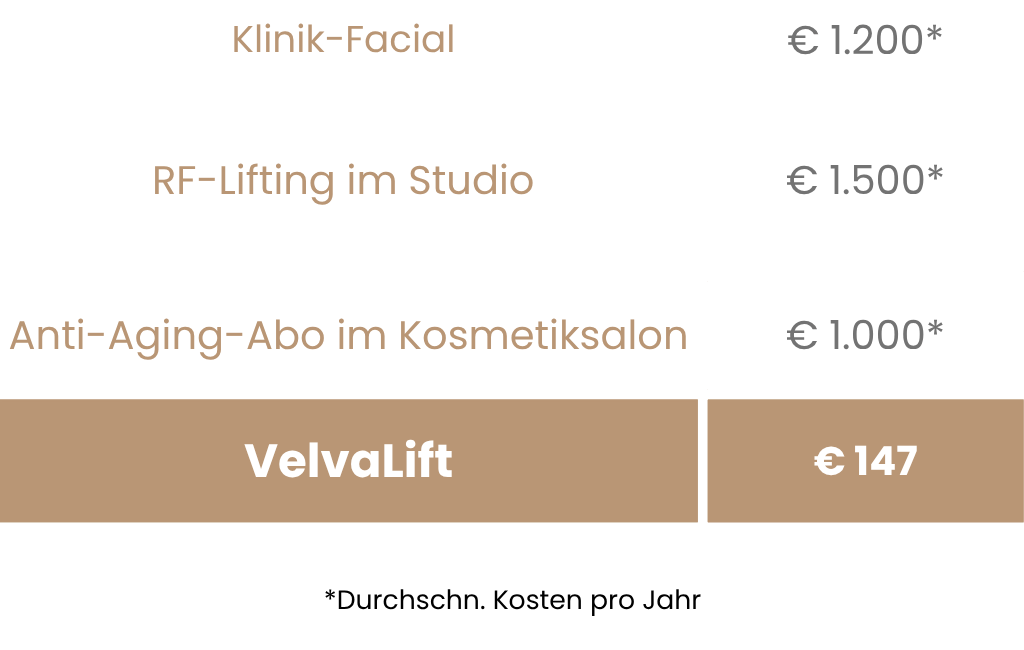Klinikgeräte sind stärker, dafür brauchst du Termine und Behandlungen sind teurer. VelvaLift bietet dir klinisch inspirierte Technologien bequem zu Hause - bei regelmäßiger Nutzung mit sichtbarem Effekt.